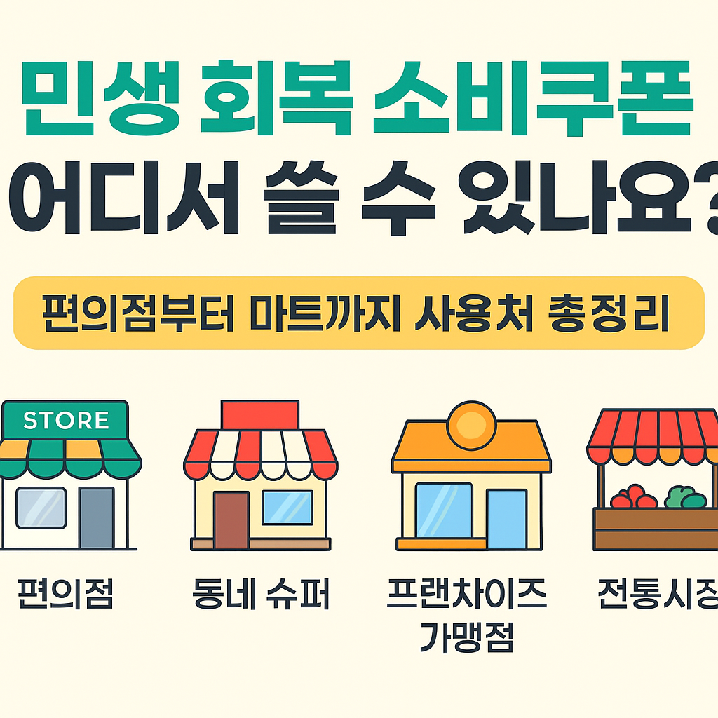 민생 회복 소비쿠폰 어디에서 쓸 수 있을지 궁금하시죠? 편의점, 마트, 전통시장부터 사용 불가능한 대형마트, 백화점까지 사용처를 꼼꼼히 정리했습니다.